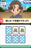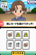 表になっているカードを全て記憶し、カードが裏返った後で、ペアになるようにカードを素早く全てタッチするクイズです。