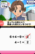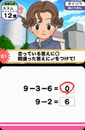 計算問題が当たっているか間違っているかを判断し、計算結果に素早く○かレ(バツ)を付けて採点します。