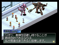 ヴィルヘルムの申し出を内心快くは思わないヘルマーとケイオス。 しかし、地上ではリヒャルト・ヘルマンの搭乗するE.S.に対し、KOS-MOSとシオンが必死に戦っていた。