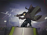 進路を塞ぐそれにE.S.で侵入するシオン達。その前に敵の機動兵器が立ちはだかるが―――。