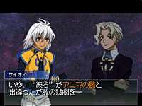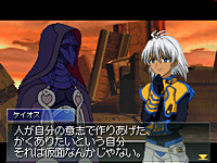 「この懐かしい気持ちは、ケビン先輩の──? ううん、もっと昔から知っているような気がする────」(シオン) 「──もう、これ以上、 彼の意志に流され続けるわけには、いかない──」(ケイオス)